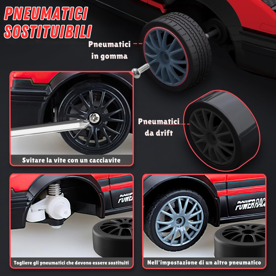 Non sei limitato a un solo stile. Con le ruote in gomma hai aderenza e controllo in ogni curva, e con le ruote da drift ti godi derapate infinite. In pochi secondi puoi trasformarla e avere la sensazione di guidare un’auto nuova ogni volta che giochi.